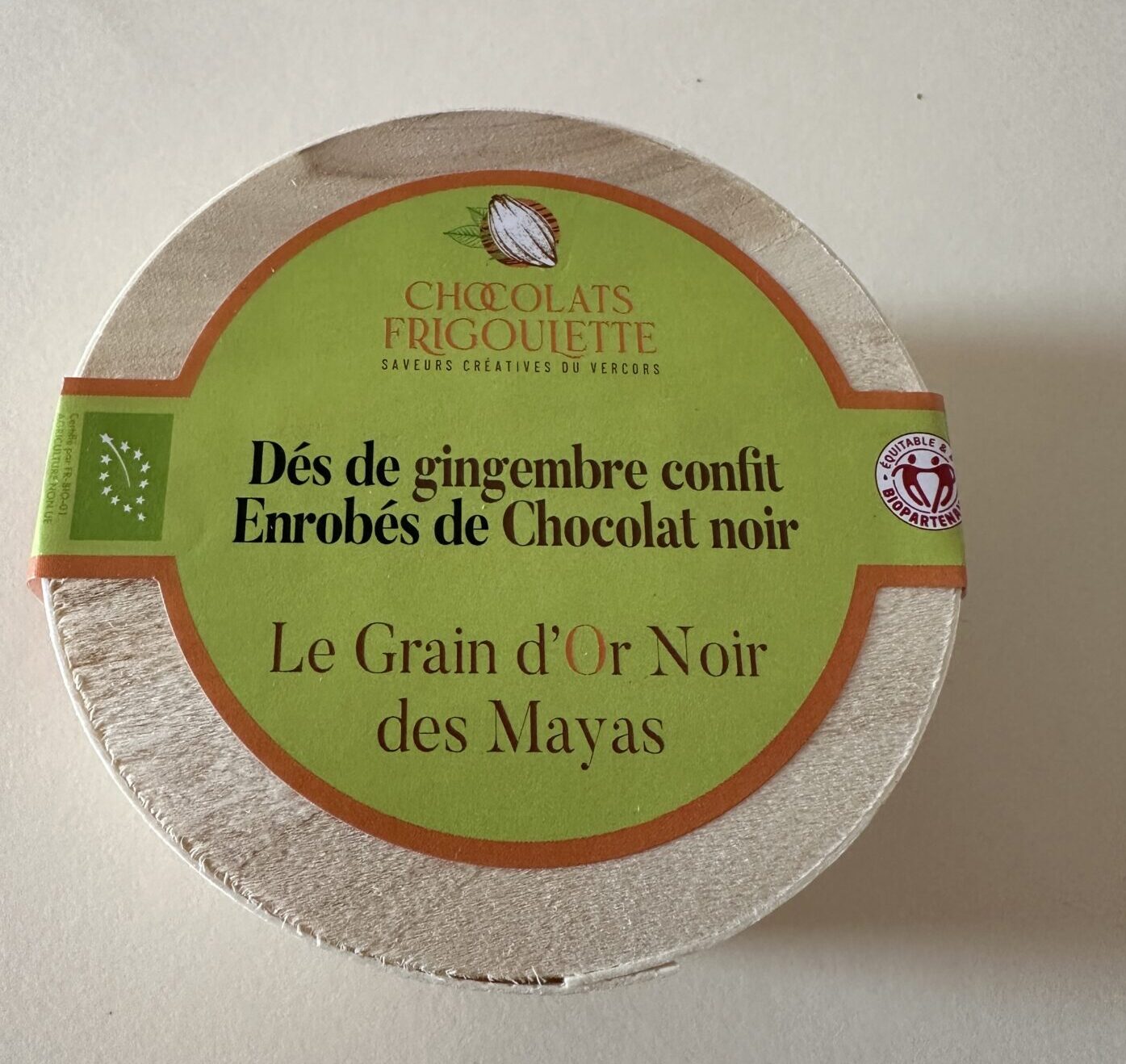 Dés de Gingembre confit enrobé de chocolat – Grain d’Or Noir des Mayas