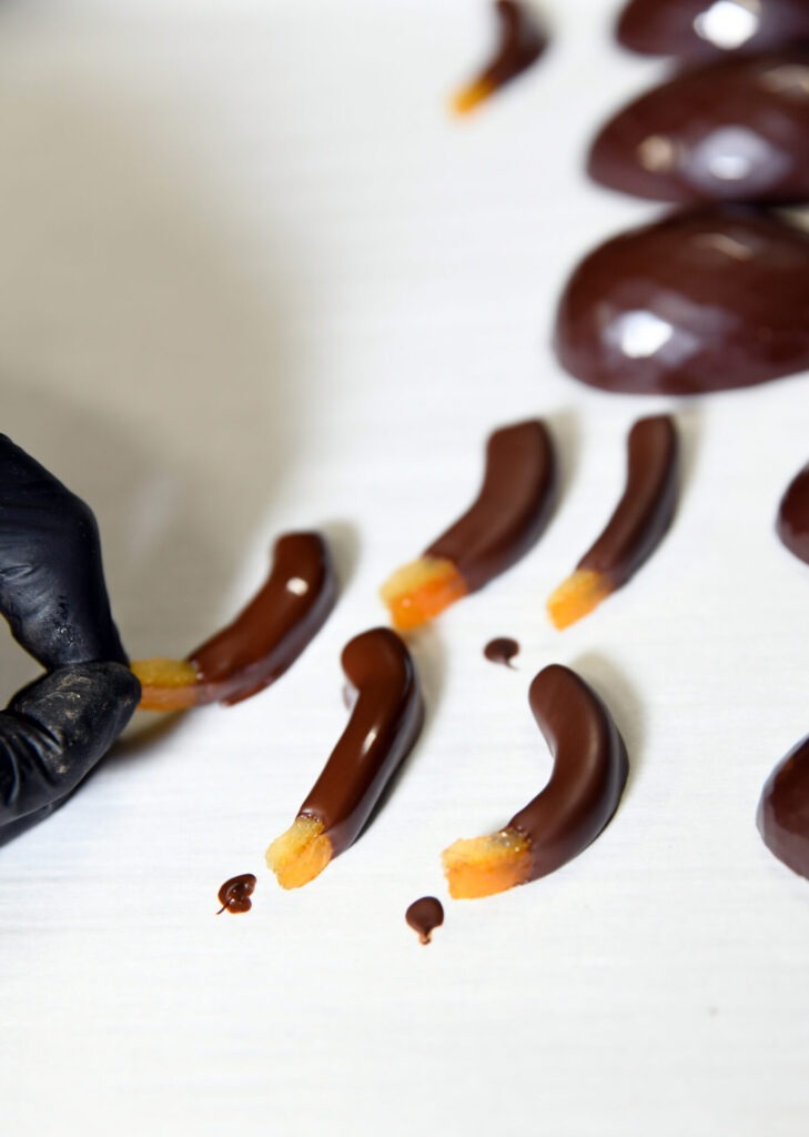 Lamelles d’oranges confites enrobées de chocolat noir
